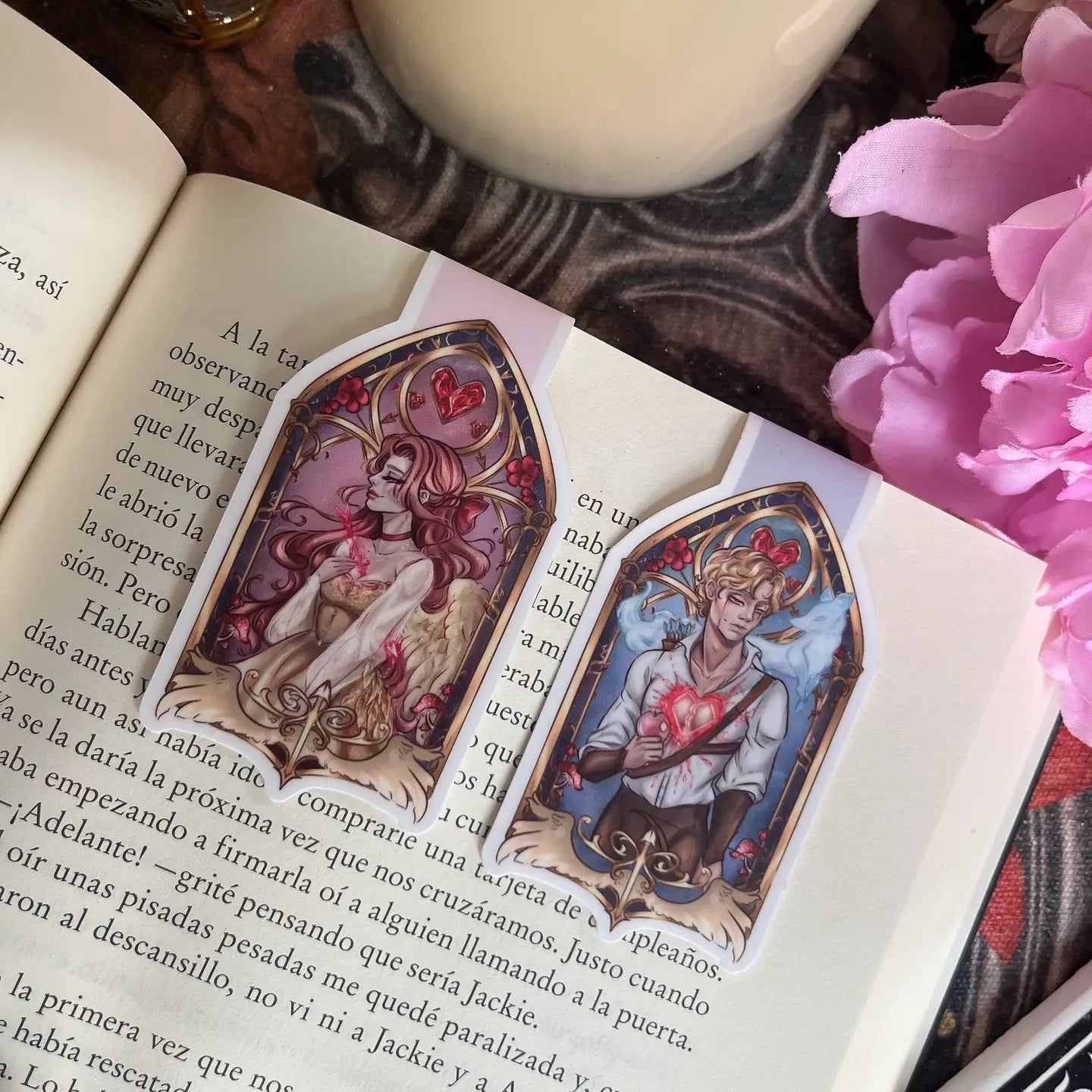 Evangeline och Jacks bågformade magnetiska bokmärken för den hängivna läsaren. Dessa bokmärken, inspirerade av fantasy- och romantikromaner, markerar säkert din sida utan att orsaka någon skada. Perfekta för att följa med läsaren på deras äventyr.